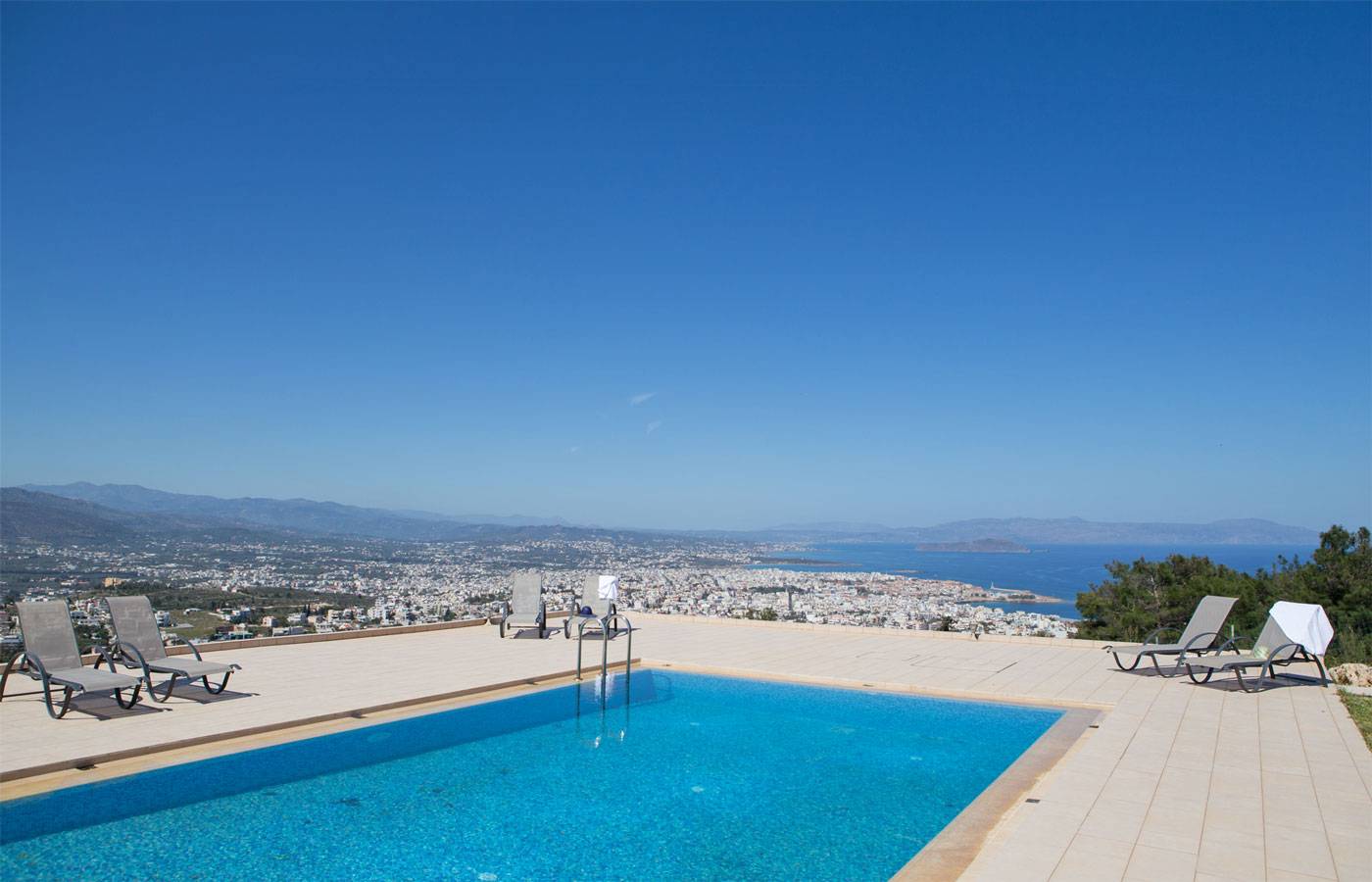 Afroditi Apartment is a sea view, elegant 6-bedroom apartment in maisonette style with a common sea view pool of 55 sqm with three other apartments (Athina, Artemis, Ira) in Golden Key Villas. It is located about 6 km from the picturesque town of Chania with a few lovely sandy beaches (Marathi, Loutraki) easily reachable with a 10-minute drive. The Apartment provides amazing panoramic views of the sea and Chania town.