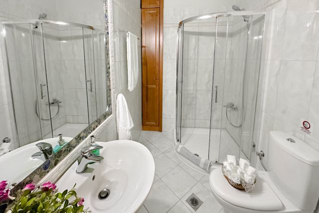 Four more bedrooms, two with a double bed and two bedrooms with two twin beds are offered on the second floor. A common shower bathroom is also available on the same level.