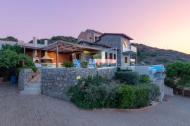 Denne luksuriøse toetasjes villaen er bygget som et amfiteater med utsikt til sandstranda i Lygaria. Den har en vakker gård med trær, blomster, grill, terrassemøbler og en utendørs spiseavdeling. Villaen er ideel for par og små familier.