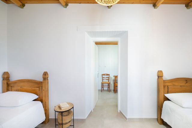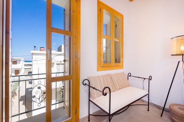 The charming Clio Apartment invites you to relax in its comfortable and convenient space. The apartment features two bedrooms, a master bedroom with a plush double bed, a smart TV, a sofa, a private balcony with a dining table for two persons, and a second bedroom with two cozy single beds.