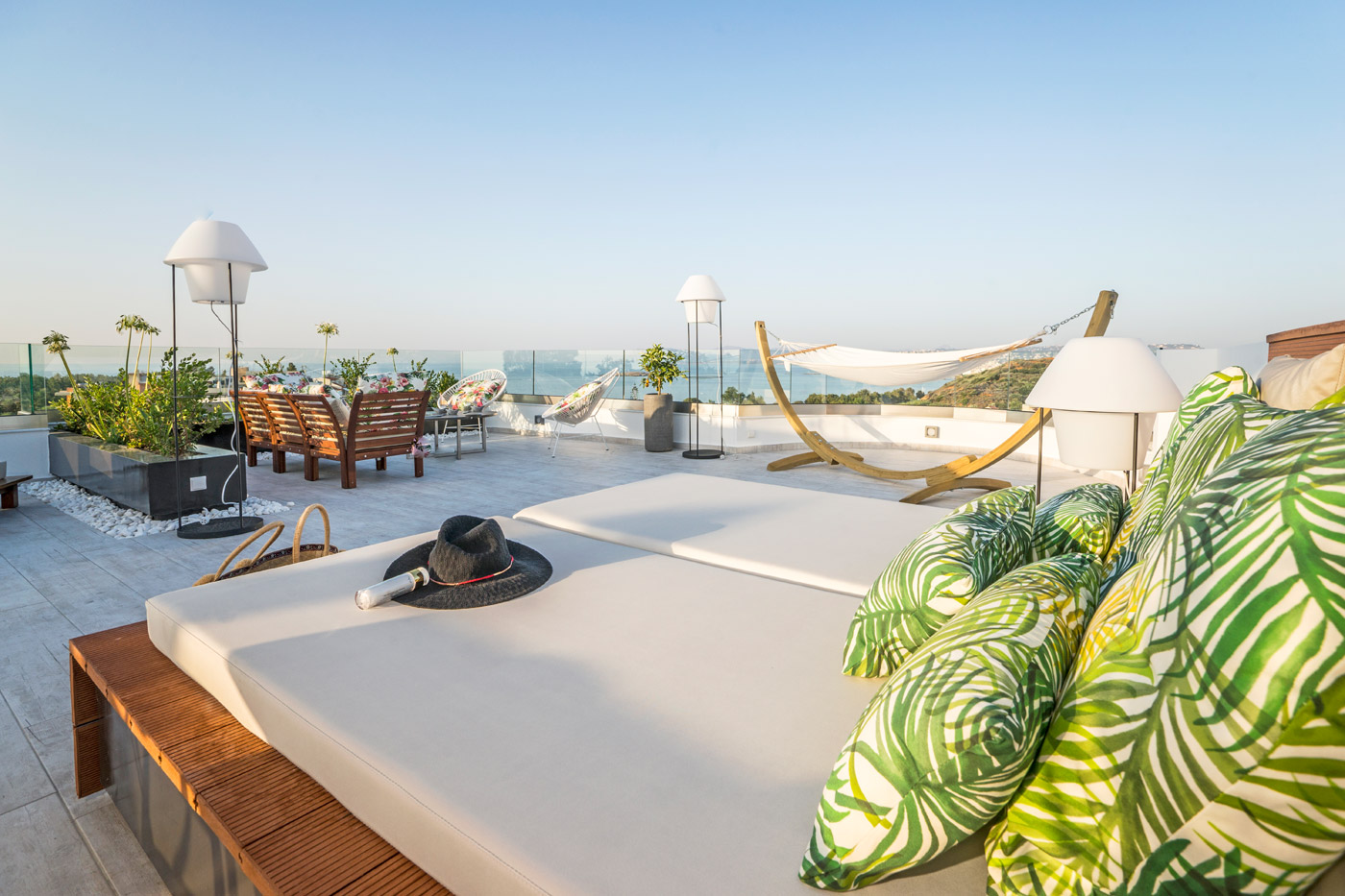 An exclusive and magical sea view roof garden, furnished with sun beds, a hammock, sofas, a BBQ and a dining area is offered for all guests. Towels and bed linen are featured in this self-catering accommodation. The Design Villa also features an indoor elevator.