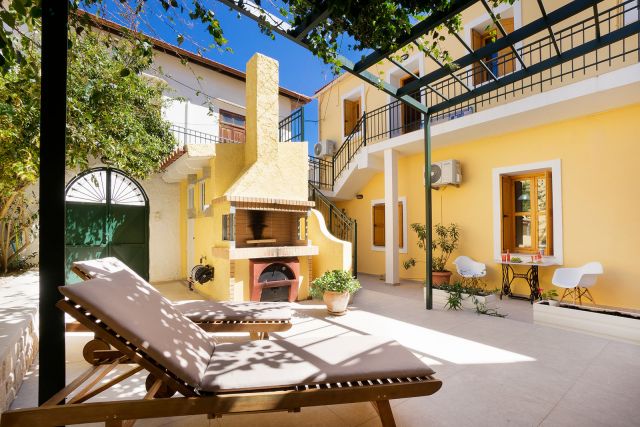 Eleni Residence is a just renovated Villa which consists of the 4-bedroom Eleni House, the 2-bedroom Clio Apartment, and the 1-bedroom Mina Aparment with a private courtyard. It is located 200 meters from the sandy beach of Kalyves. Many mini-markets, restaurants, taverns, a bakery, a butchery shop and a few bars can be found within short walking distance. The picturesque town of Chania is located 18 km away.