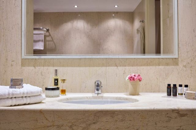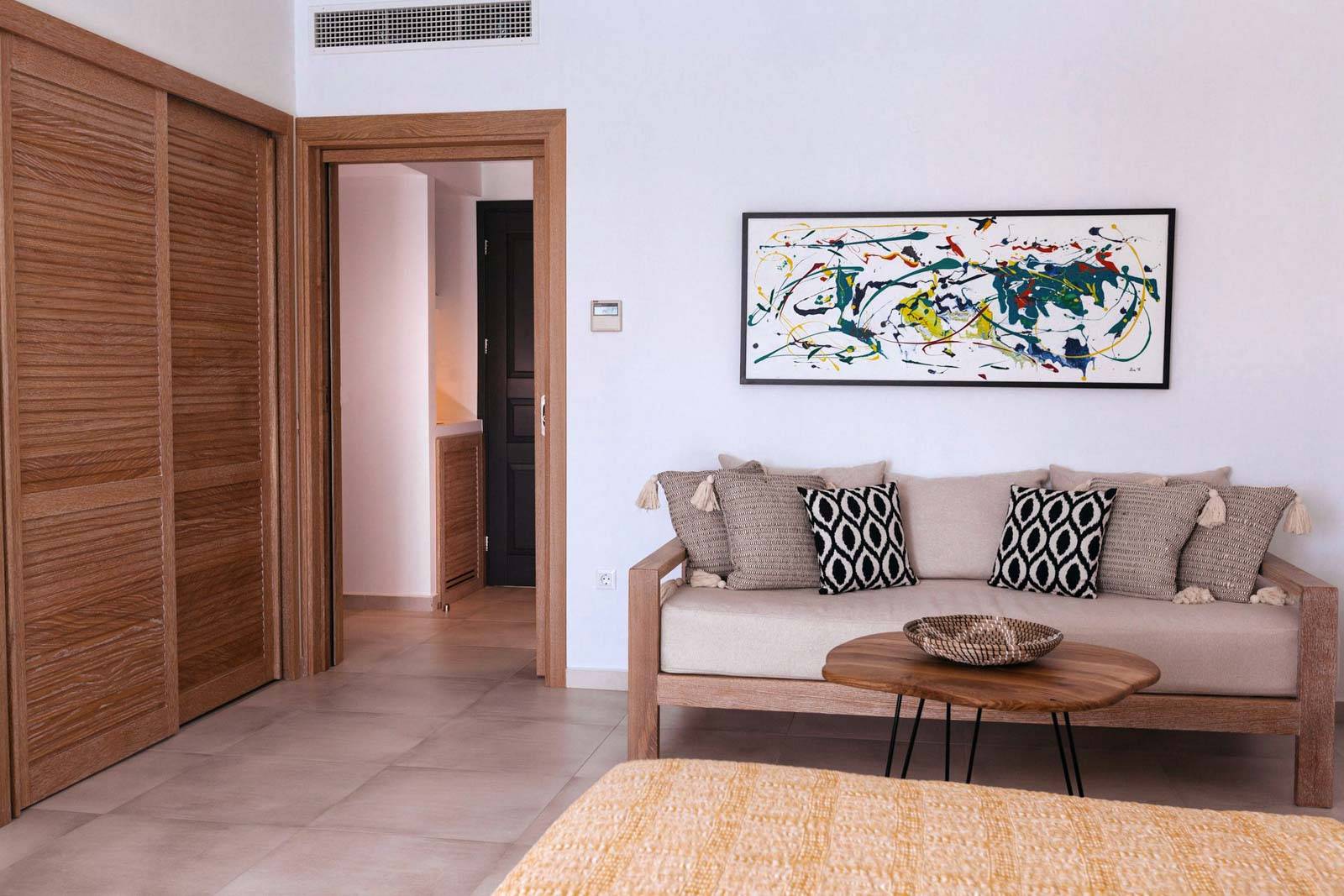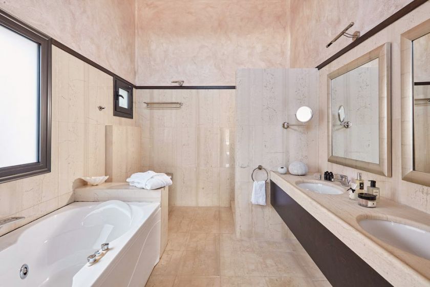Elounda Palm Hotel, Elounda, infinity suite bed 1Elounda Palm Hotel, Elounda, swimming pool sunsetElounda Palm Hotel, Elounda, two bedroom family suite bathroom 1a