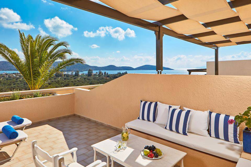 Rooms and suites open onto private balconies overlooking the hotel’s landscaped gardens or the deep-blue Elounda Gulf. All accommodation includes air conditioning and satellite TV, while selected options feature shared or private pools for added privacy.