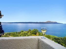 Die Gäste haben von jedem Appartement und von allen Terrassen einen fantastischen Blick auf die Almyrida Bucht und den Sonnuntergang über dem Mittelmeer. Kostenlos WLAN, Klimaanlage und Parkplatz werden angeboten.
