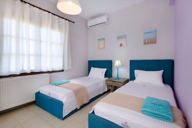 The 3-bedroom Iakinthi Villa in Stavros, Akrotiri is located 600 meters only from an excellent sandy beach (sunset beach) in the area of Stavros and 800 meters from the very beautiful blue beach, in a private plot of 4.000 sq m. The center of Stavros is 1100 meters away with many local taverns, mini markets and another very nice sandy beach. The town of Chania is 15 km away. A private swimming pool among lovely gardens with a mix of palm trees, pine trees and local plants is provided.
