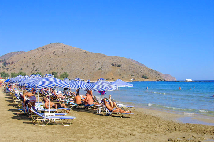 Hier befindet sich der wahrscheinlich längste und beste Sandstrand im Osten Kretas, an dem sich weitläufig verstreut einige Souvenirgeschäfte, Tavernen und Pensionen befinden.