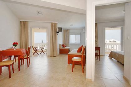 Kalimera Hotel biedt 16 studio's en appartementen met 1 of 2 slaapkamers verspreid over vier etages in één hoofdgebouw. Alle zijn uitgerust met een volledig ingerichte keuken, airconditioning, televisie, kluisje, eigen badkamer met douche en warm water en een balkon of terras met uitzicht over zee.