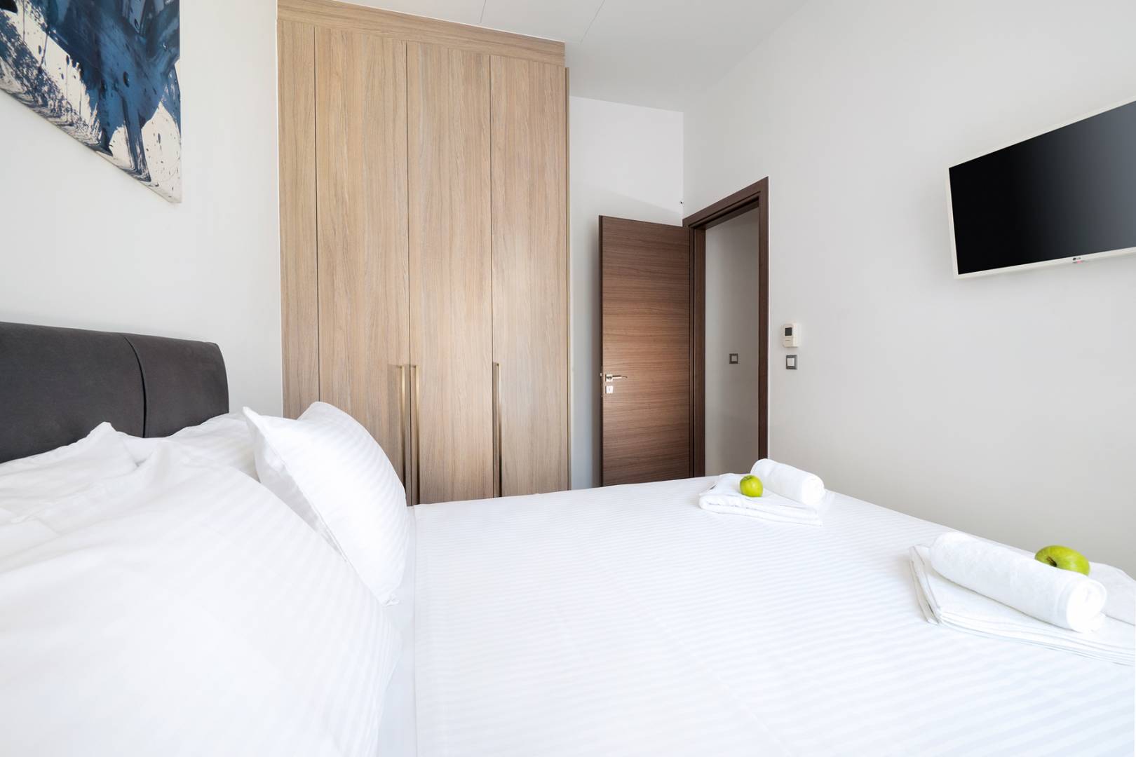 Kappa Residence features three elegantly designed bedrooms, each equipped with a comfortable queen-size bed, a smart TV, and a spacious wardrobe. Two modern shower bathrooms add to the comfort of your stay, including a washing machine.
