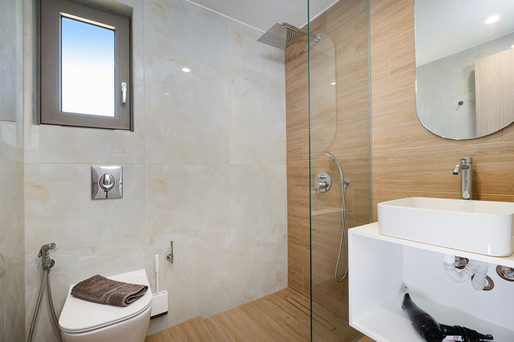Breezy Villa features a lovely private pool of 40 m², complete with sun loungers, a sea view dining area and a barbecue corner. This modern villa features a spacious sun terrace with sun loungers, a shaded outdoor dining area, and direct access from the living room.
