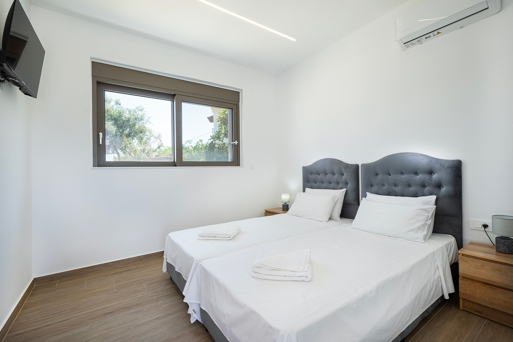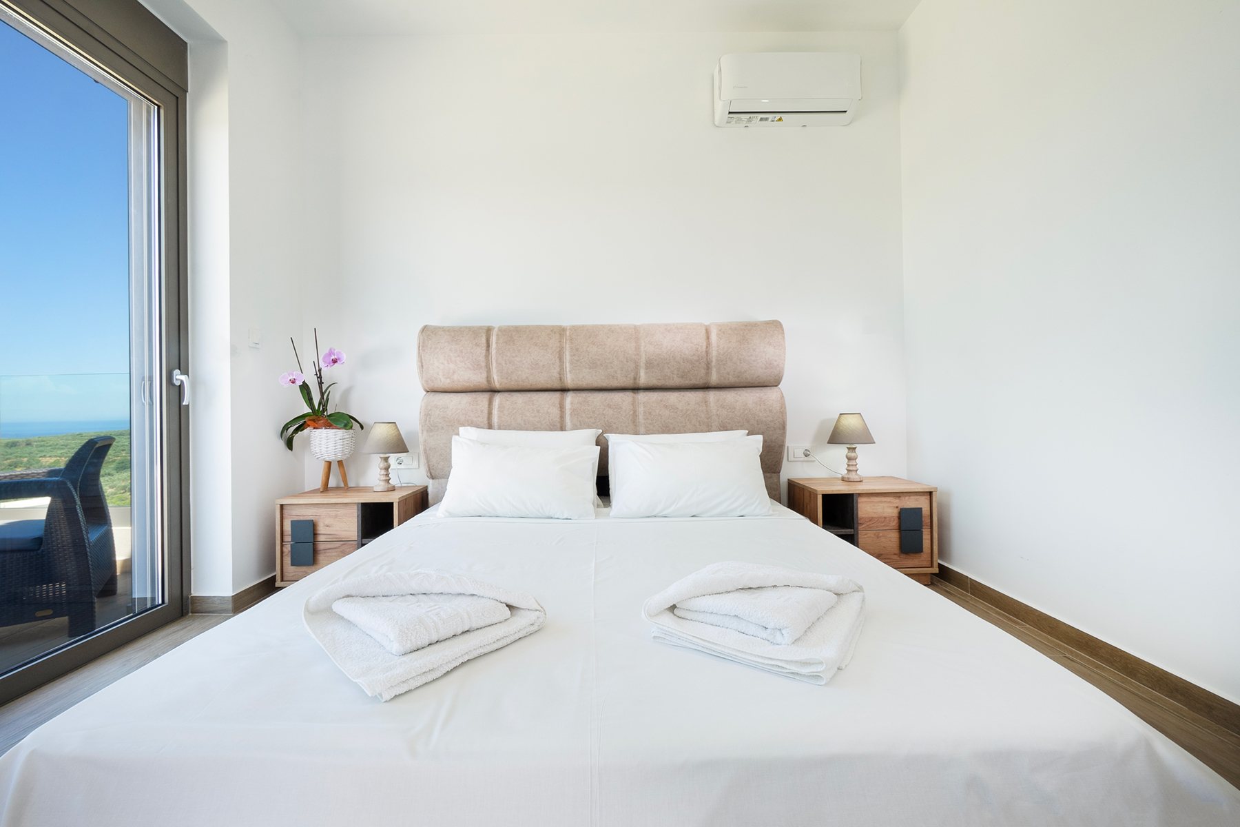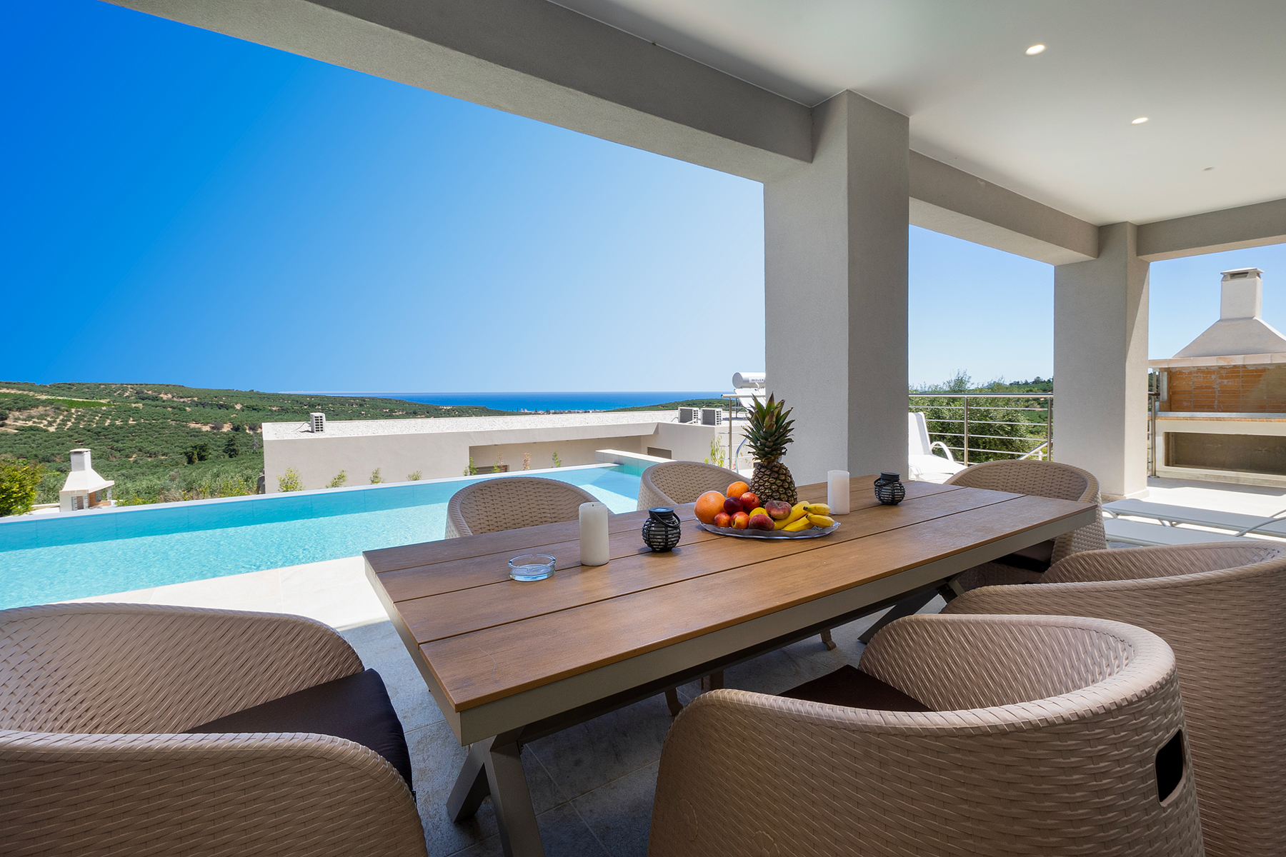 Air conditioning is available in all bedrooms and the open-plan living area, and wireless internet is provided throughout the villa.