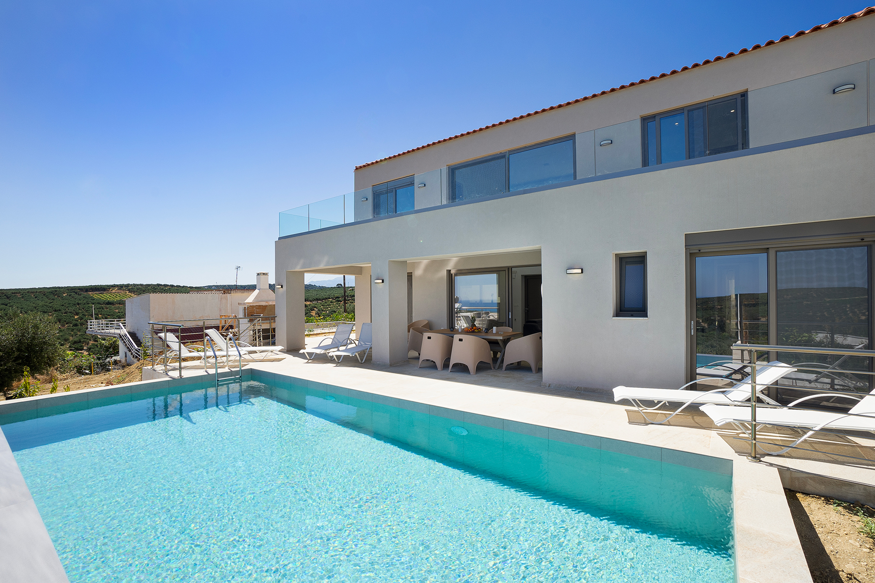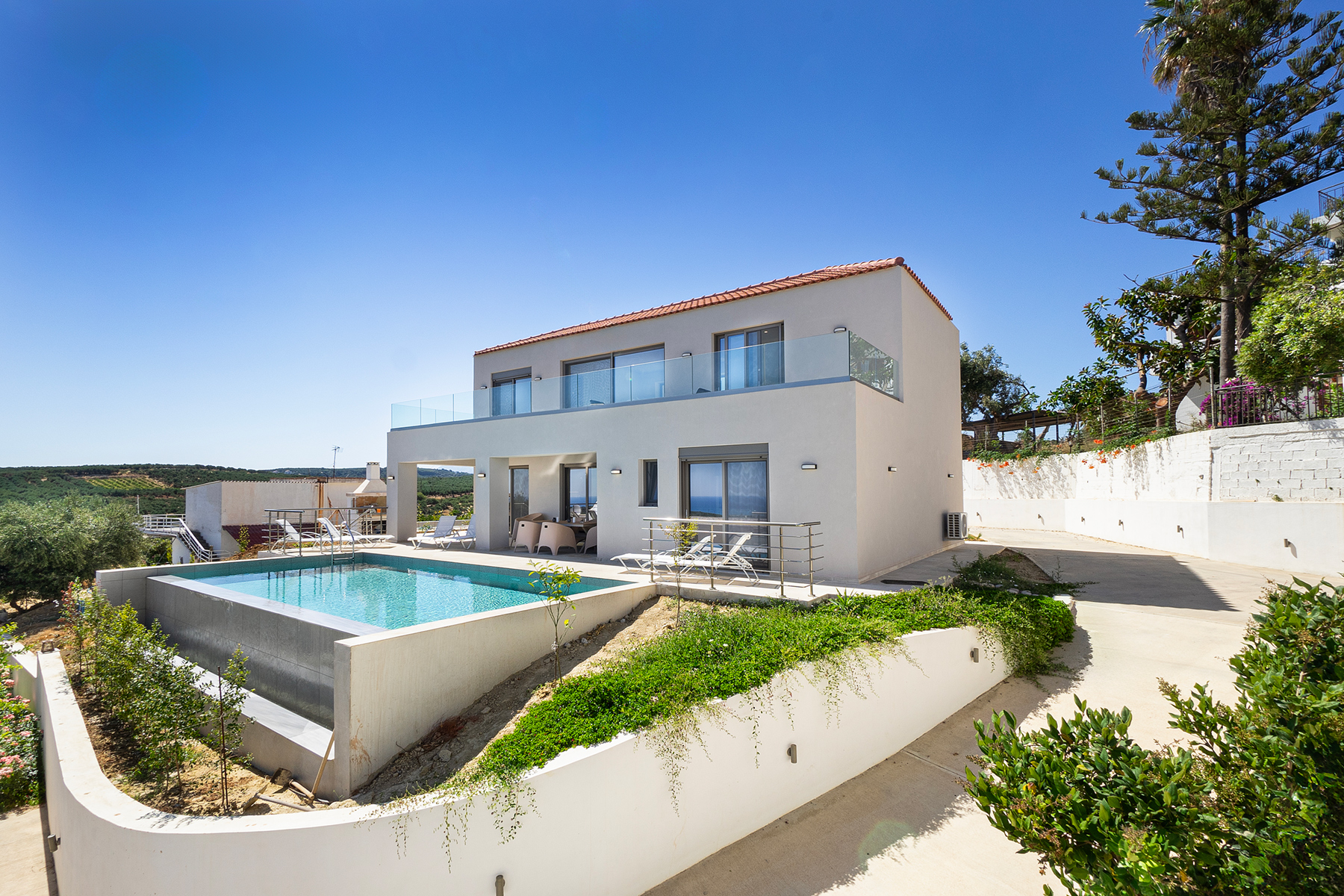 Breezy Villa is a brand new 4-bedroom retreat featuring a beautiful private pool and wonderful sea views. It offers four comfortable bedrooms and three modern bathrooms, ideal for families or groups of friends. Located just 3 km from the shingle beach of Maleme and 7 km from the vibrant town of Platanias, guests can find a variety of charming tavernas and a supermarket in short driving distance.