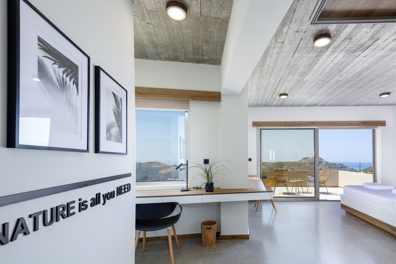The west 2-bedroom Villa II has an open plan living room area with a dining table and a fully-equipped kitchen. Two double bedrooms with two en-suite bathrooms and a patio with an outdoor seating area and lovely nature and sea views are offered.