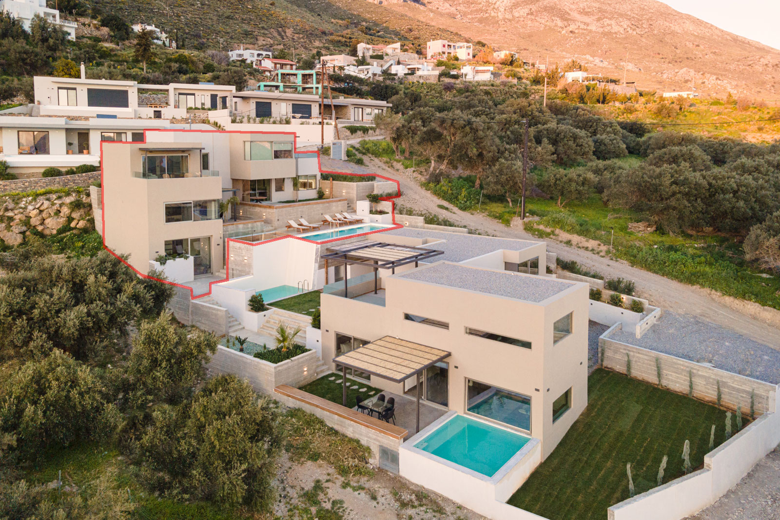 Modern Villa is a brand new 5-bedroom villa with a private pool, which consists of one 3-bedroom and another 2-bedroom villa, one next to another. It is located in the peaceful village of Mariou in south Rethymno, offering lovely sea views from the interior of the villa and the pool area.