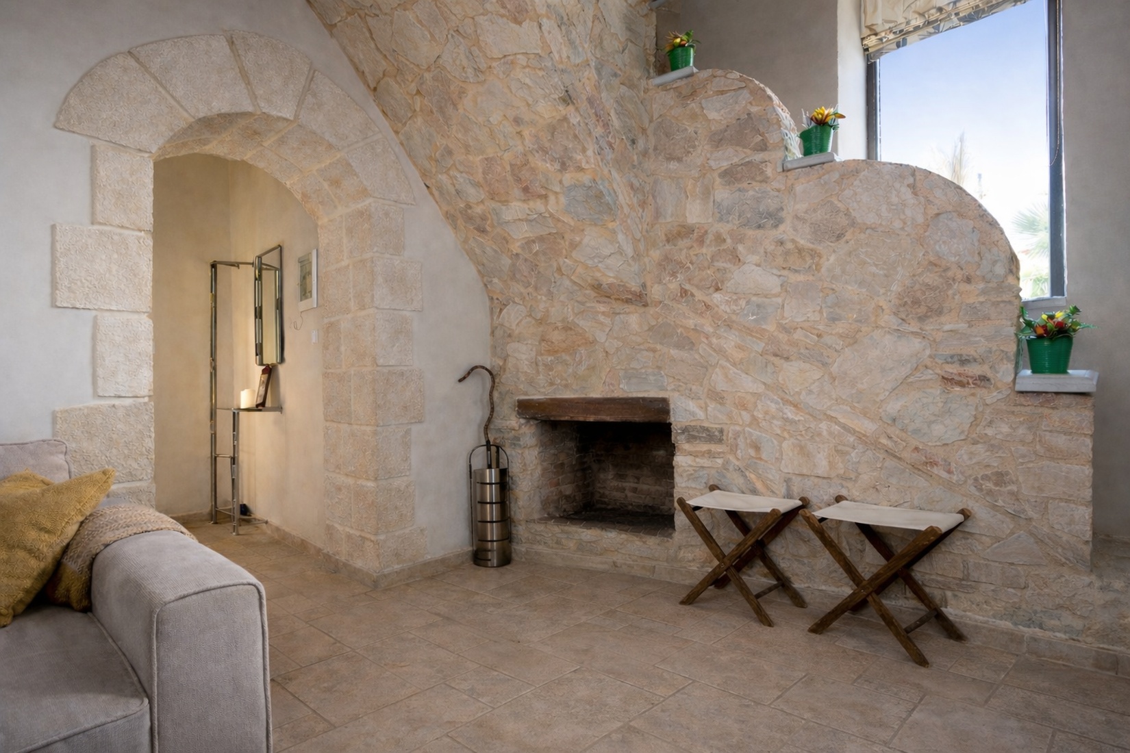 Le camere sono accoglienti e decorate in modo tradizionale con archi in pietra e travi in legno. In tutte c’è l’aria condizionata che rende la permanenza ancora più piacevole.