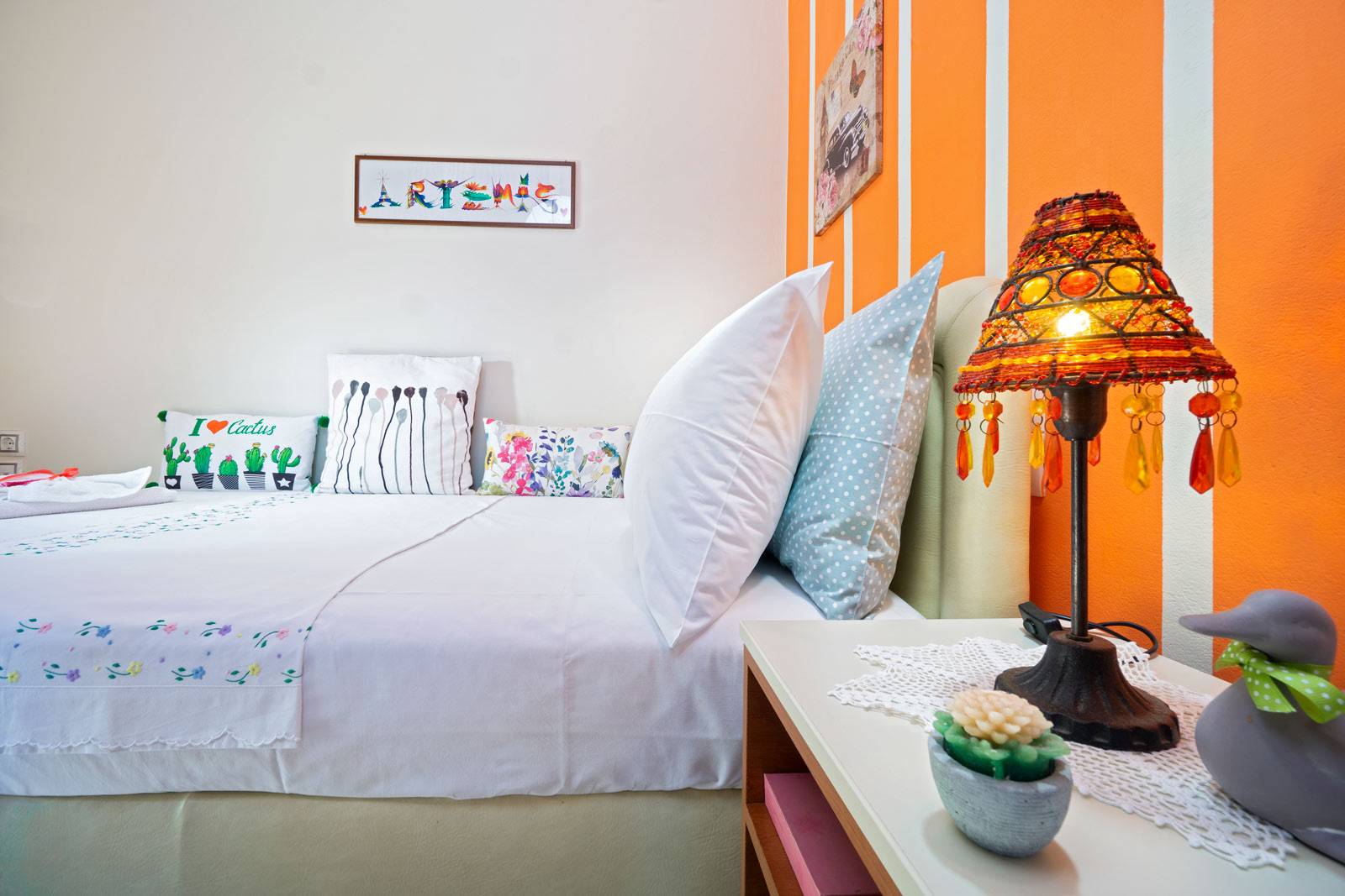 The lake is in a beautiful landscape, lying in a valley among the hills, about 3 km from Georgioupolis in Chania Prefecture (west Crete). The lake also changes size, as the locals say, as the level drops in late summer, revealing a thick layer of white sand which forms temporary beaches. In these months you can walk along the bank or enjoy a meal in one of the many tavernas and cafeterias, beside the lake and enjoy the lovely view.