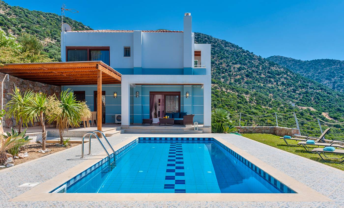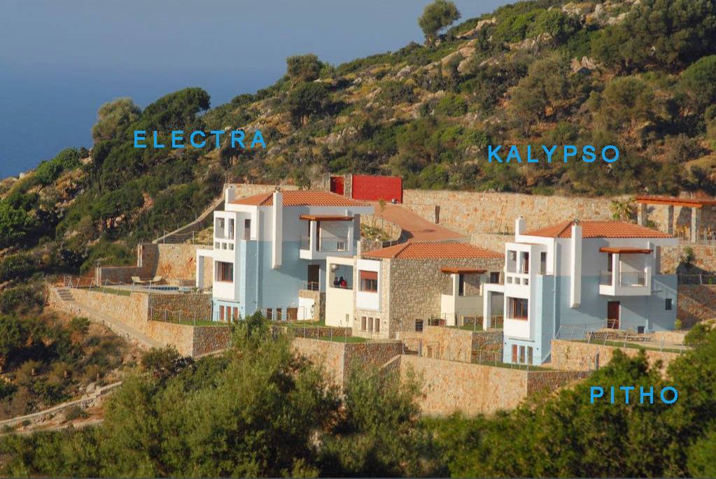 En utmerket gruppe på tre og et annet nærliggende luksus 3-roms villaer med privat basseng og nydelig sjøutsikt tilbys på toppen av åsen i Bali, 35 km fra Heraklion, 35 km fra den flotte byen Rethymno og 800 m fra sandstranden.