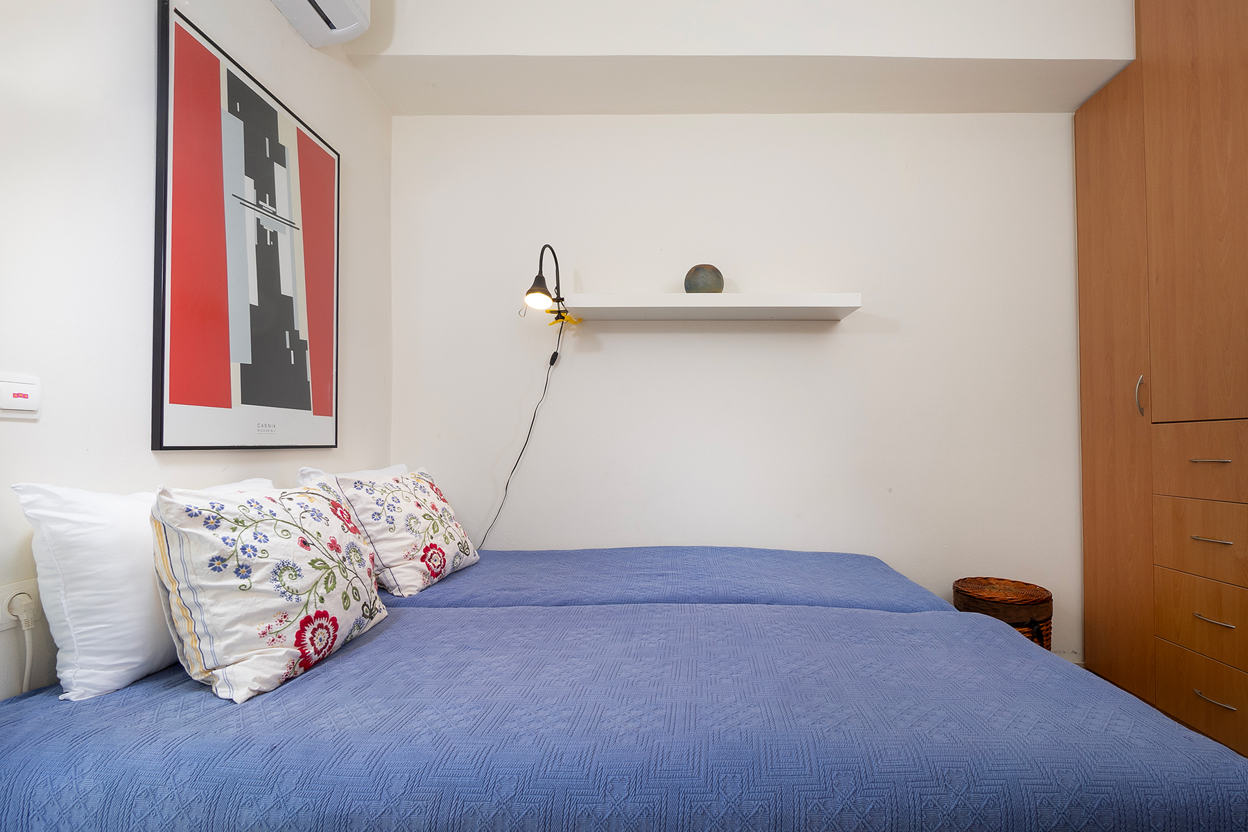 Air-conditioning in the two bedrooms and the open plan area, bed linen, bathroom towels are provided. A private open parking space in the plot of the residential building is also available.