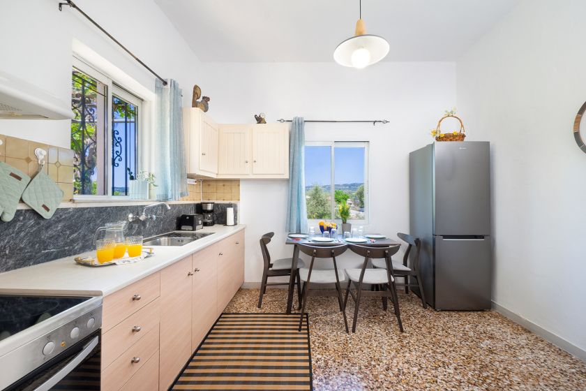 Rodanthi House is a hospitable, traditional house in a peaceful location with lovely views of Cretan nature. Two bedrooms, one bathroom, a living room area, a fully-equipped kitchen and a lovely veranda with a shaded dining area and sun loungers are provided. It is located 500 meters only from the centre of the town of Vryses, where can be found a few very nice local tavernas, a supermarket, a bakery shop and a patisserie. The nearest sandy beach of Georgioupolis is about 6 km away.