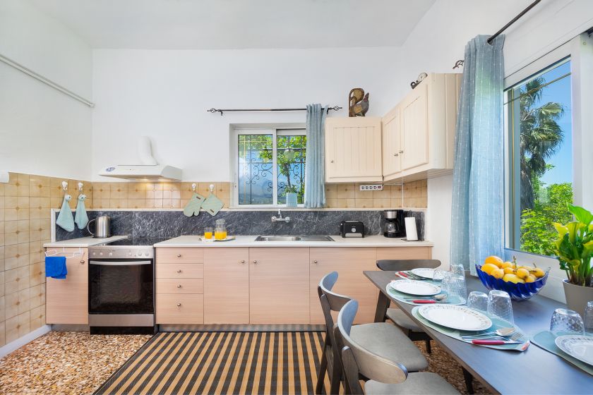 All guests can enjoy a very nice private veranda with views to the west, the countryside of Crete and the "white mountains". A shaded dining area and two sun loungers are provided.