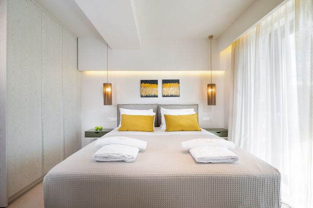 Ariadne Apartment is a brand new, ground floor 2-bedroom Apartment, 500 meters from the sandy beaches of Agioi Apostoloi. A private courtyard with a pergola with a dining table and a barbecue corner is offered.  Mer...