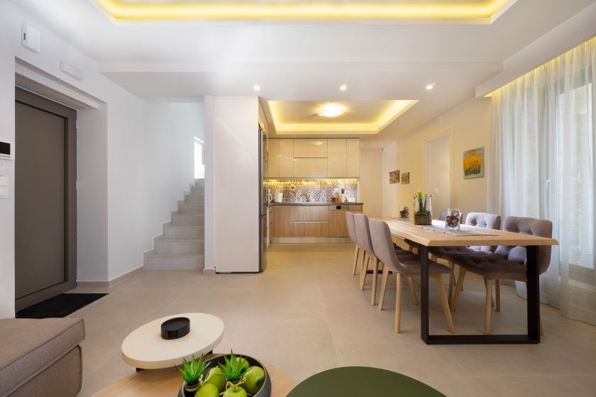 The modernly designed 3-bedroom Design Villa is located in the area of Agioi Apostoloi, only 550 meters away from the lovely sandy beach of Chrissi Akti, 3 km west of Chania. The property offers magnificent sea views on a very nice, sea view roof garden.  Mer...