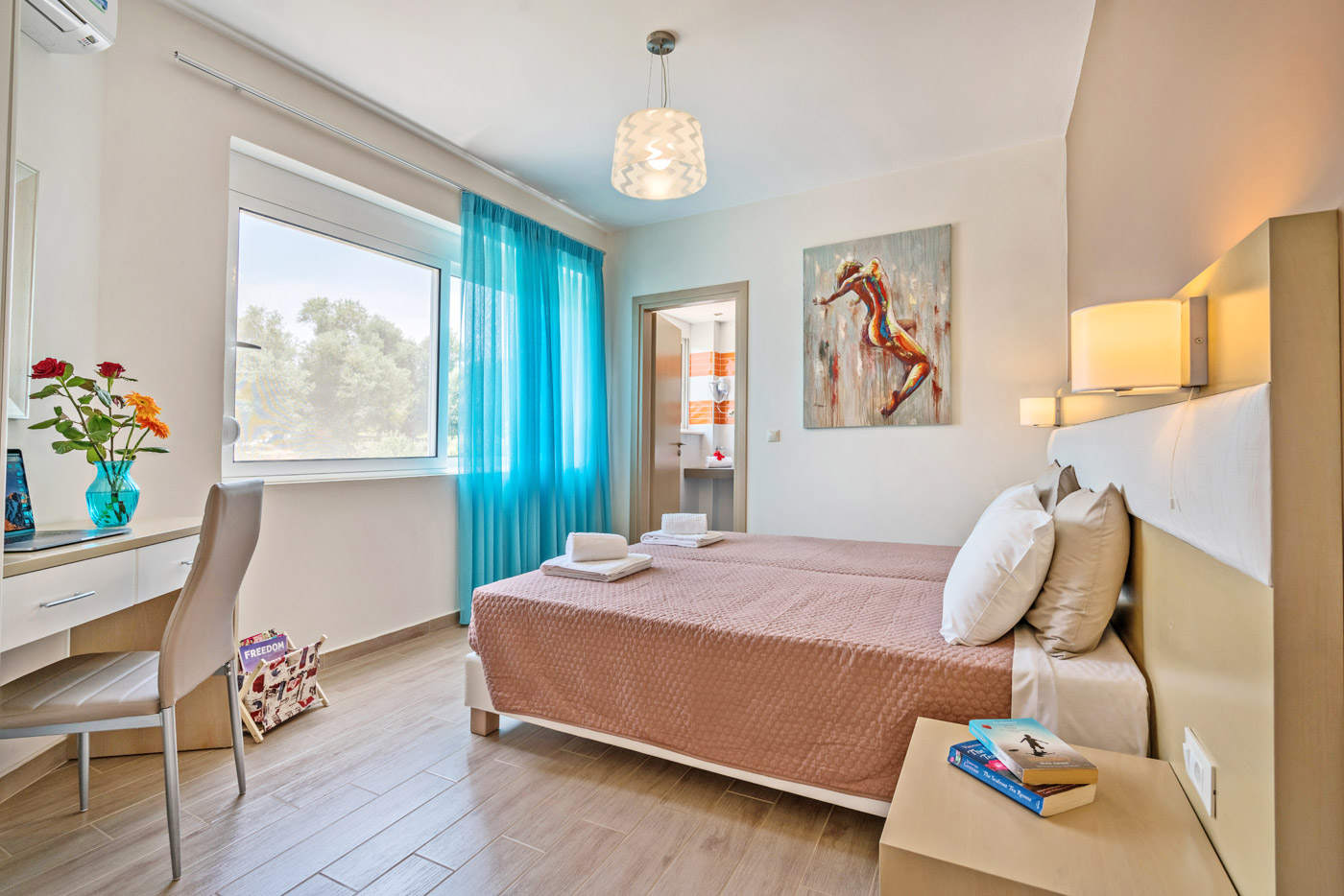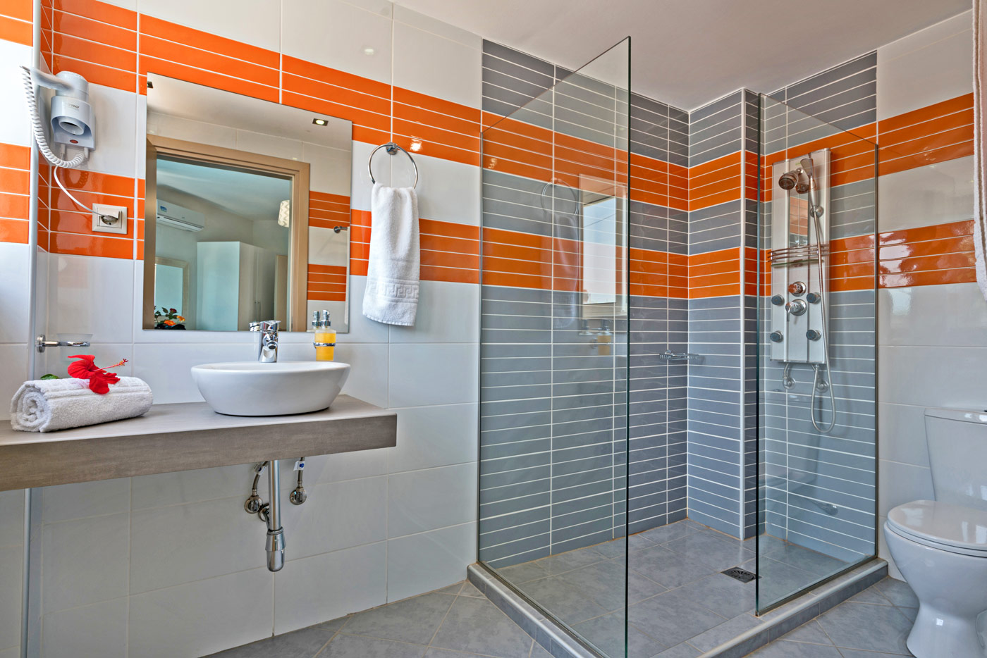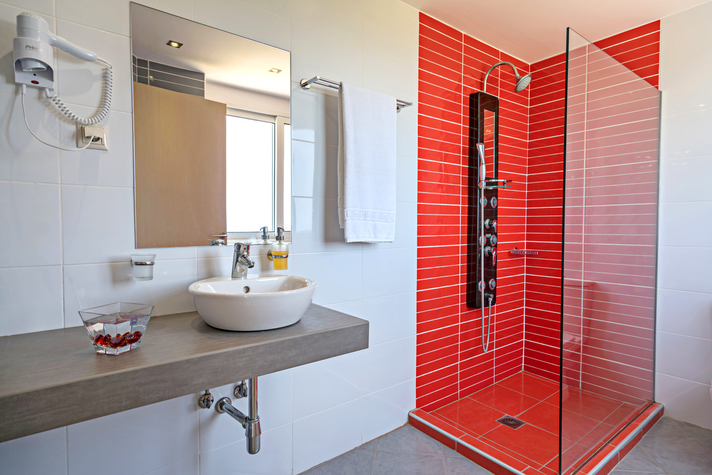 Au niveau supérieur, vous trouverez une chambre double avec salle de bain-douche adjointe avec hydro massage. Elle donne sur un balcon meublé qui offre de belles vues sur la mer et la montagne. Une deuxième chambre double est également offerte, équipée de salle de bain-douche avec hydro massage et d’une fenêtre avec vue sur la montagne. Enfin, il existe une chambre double avec salle de bain-douche avec hydro massage et fenêtre avec vue sur la mer.