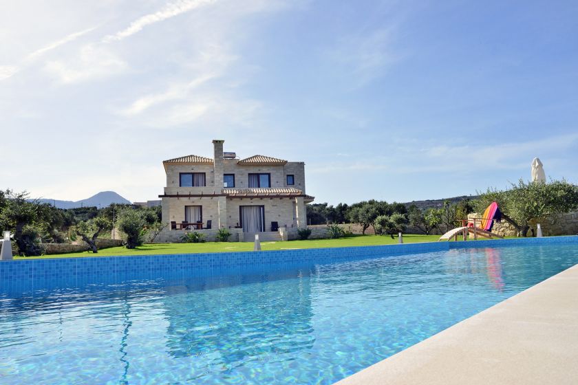 Villa Aloni is a brand new 4-bedroom Villa with a sea view private pool, located in the small traditional village of Agios Georgios, 6 km from the town of Kissamos. The famous sandy beach of Falasarna is located 8 km away and the tropical style beach of Elafonisi 48 km away.