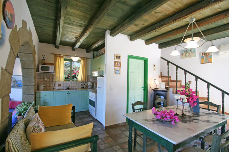 On the ground floor there is the open plan picturesque and sea view living room (with fireplace), the fully-equiped kitchen and the spacious dining room. A lovely stonebuilt arch is designed to merge the spaces, creating a romantic atmosphere.