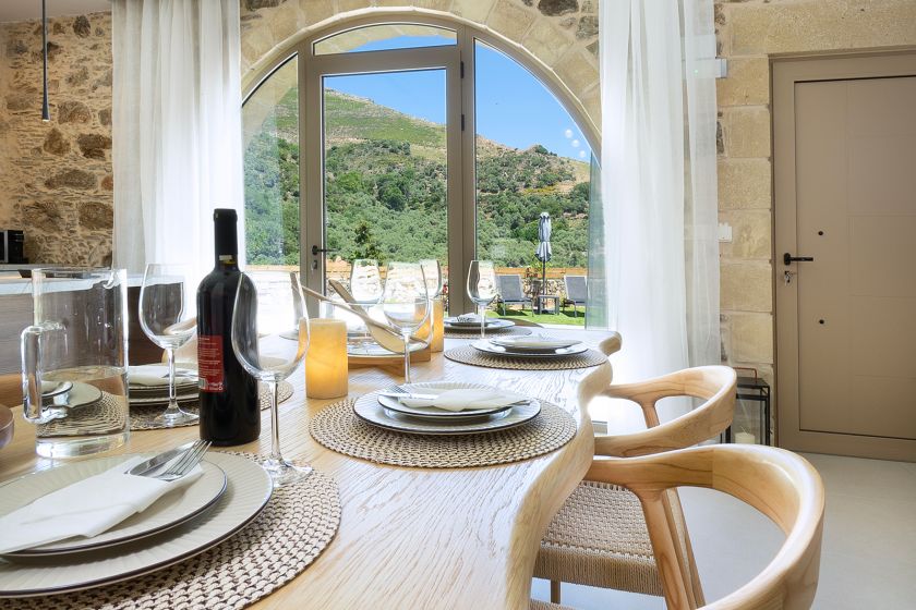 Villa George, Elafonisi, kitchen 1Villa George, Elafonisi, dining table 1aVilla George, Elafonisi, open plan area 1a
