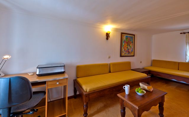 La villa in stile neoclassico offre un arredamento elegante nel salone (con caminetto e una fantastica scultura sopra di esso) in un ambiente unico con la sala da pranzo e la cucina. Troverete tre spaziose camere, una galleria per dormire ed un fantastico cortile con piscina.