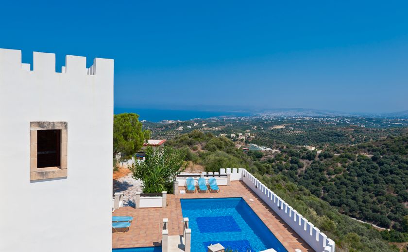 Villa Georgokastelo è una bella e pittoresca villa (come un castello) da 4 camere sulla cima di una collina, situata nella stazione balneare di Stalos, a 3 Km dal mare e dalla spiaggia. Si trova 10 Km ad ovest della Canea.