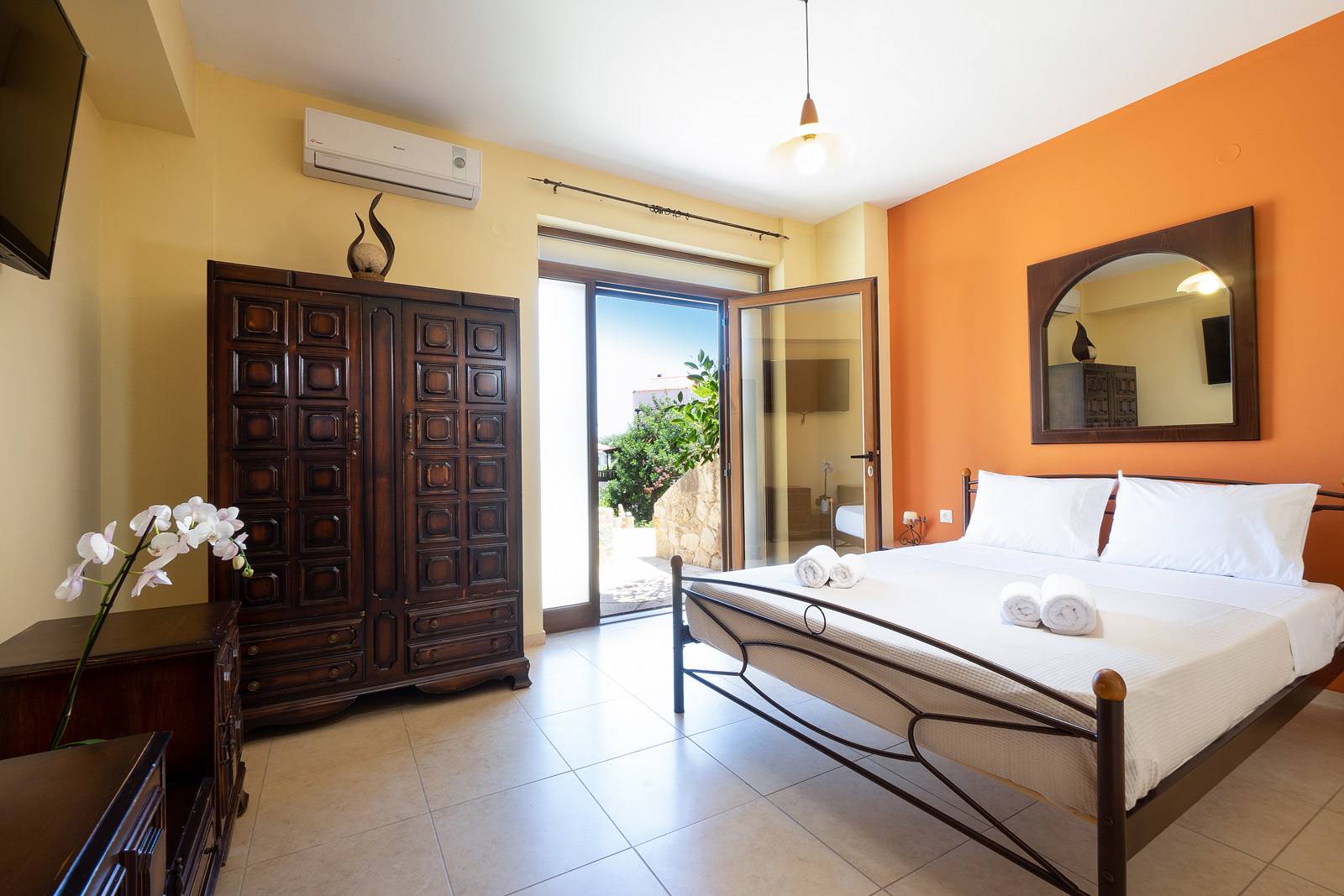 Προσφέρεται ένα υπνοδωμάτιο με θέα στη θάλασσα με κρεβάτι queen size και τηλεόραση smart 50 ιντσών και ένα υπνοδωμάτιο με δύο μονά κρεβάτια που μπορούν να μετατραπούν σε διπλό κρεβάτι. Στη βίλα διατίθενται επίσης δύο μπάνια με ντους και ένα ακόμη WC. Παρέχεται επίσης πλυντήριο ρούχων.