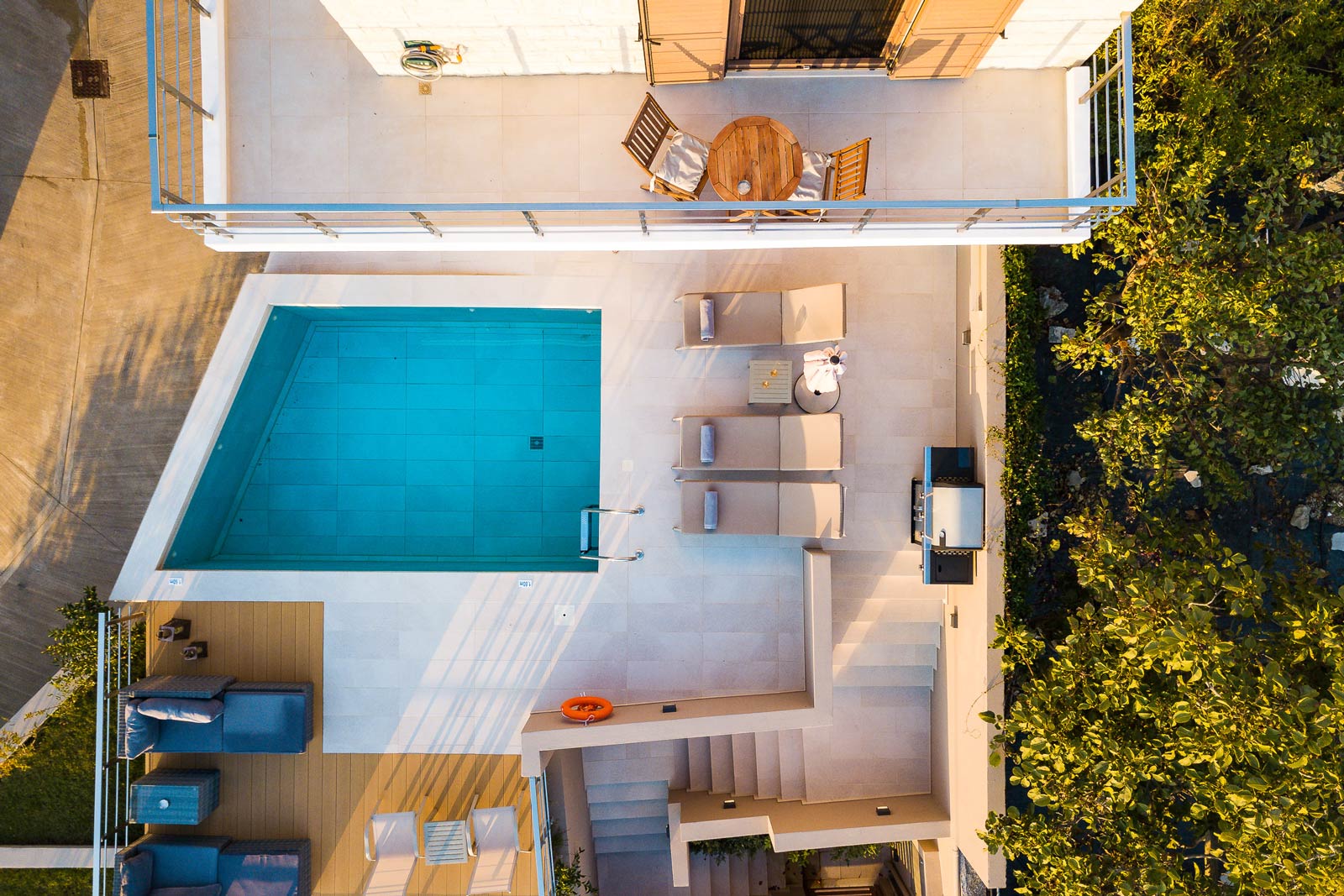 A private pool with beautiful views, sun-loungers, sun umbrellas, a barbecue and an outdoor seating area are provided in the pool area. There is also access to a lovely backyard with an outdoor dining area, a built in barbecue and a wood oven, fenced to separate it from the backyard of the detached Villa built next to Villa Skyline. Free private parking space is also offered.