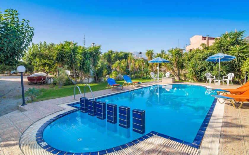 Κάθε βίλα διαθέτει έναν ενιαίο χώρο καθιστικού με δύο καναπέδες κρεβάτια ορθοπεδικά, μια πλήρως εξοπλισμένη κουζίνα και ξεχωριστό υπνοδωμάτιο με ένα διπλό κρεβάτι. Μια υπέροχη κοινόχρηστη πισίνα με φυτά, γκαζόν και πολλά λουλούδια προσφέρονται στην κοινόχρηστη αυλή.